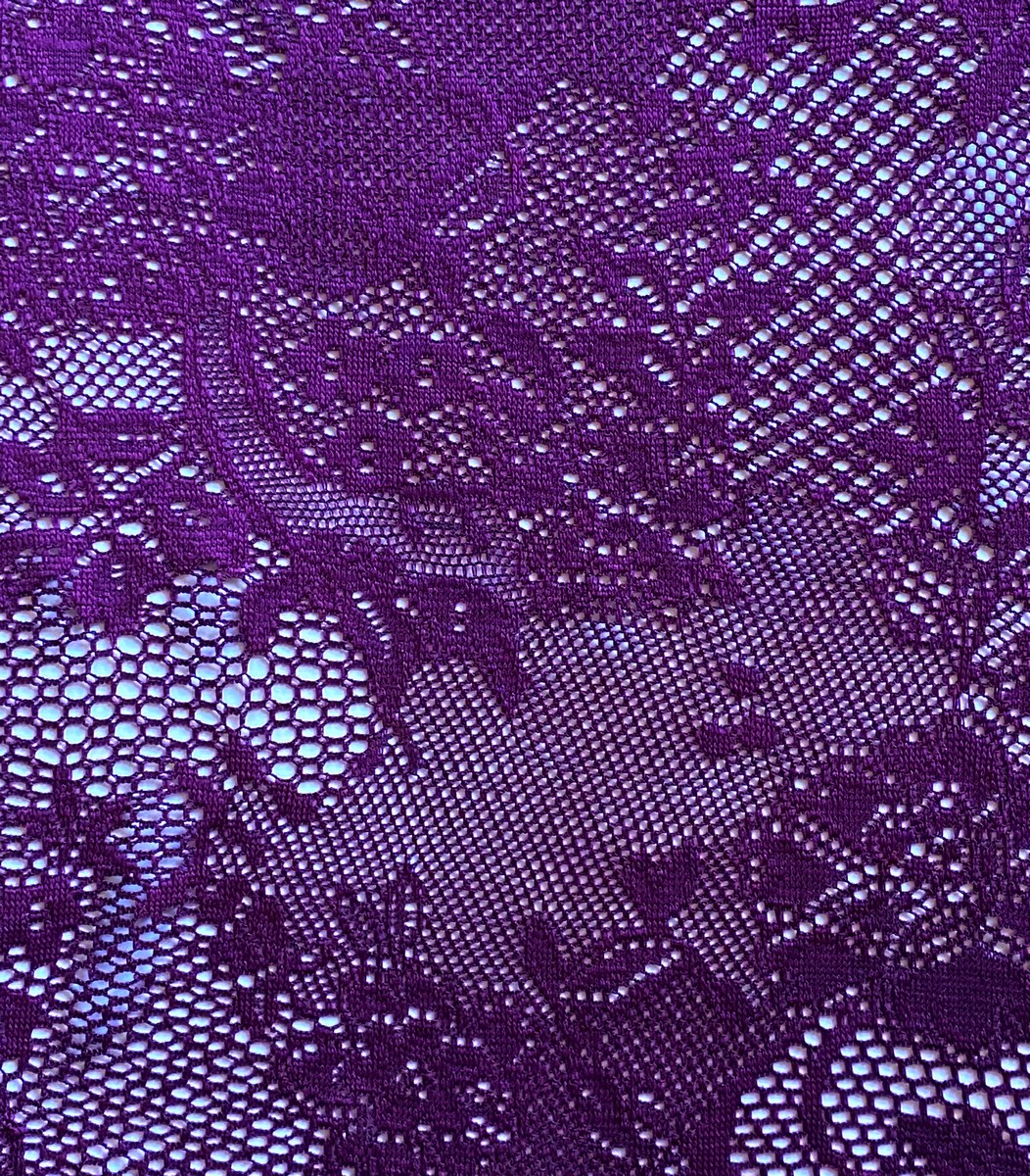 Oryginalna, elastyczna koronka o deseniu kwiatowym w kolorze śliwkowo- fioletowym, rozciągliwa na 4 strony. Bardzo dobra jakość koronki sprawia, że uszyte stroje, prezentują się doskonale.