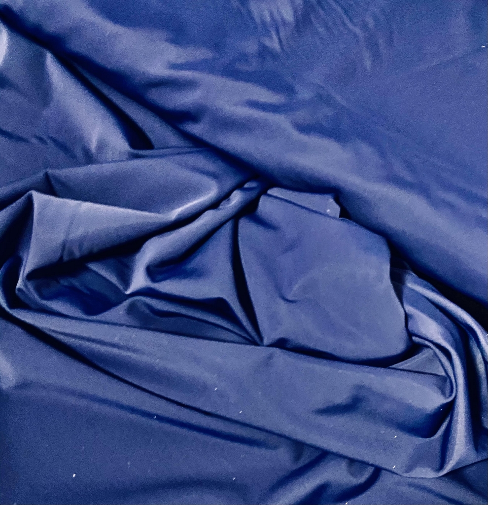 Gładka matowa lycra w kolorze ciemnego granatu. Doskonała rozciągliwość na 4 strony, delikatna i satynowa w dotyku. Tkanina na stroje taneczne, do akrobatyki, na stroje gimnastyczne, na stroje disco dance, sukienki i stroje do jazz dance, idealna tkanina dla artystów.